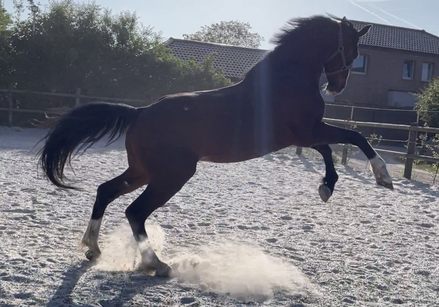 Le père de mon ami a commencé, Daim était un peu surpris (forcément, il fait 1,95m...) mais de bien bonne volonté. Surtout qu'il l'a pris en licol et tout ce qui est pli ou EED n'est absolument pas abordé normalement. A part ces quelques cafouillis, ça se passe bien, et il valide son savoir 3.