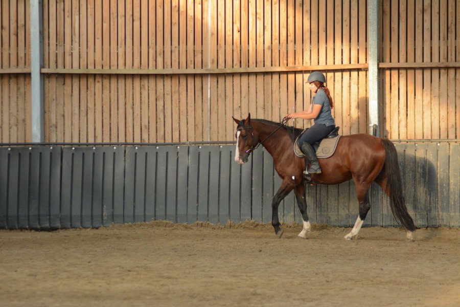 Séance plutôt longe pour nous, en cherchant surtout à améliorer les départs au galop (il part fréquemment à faux à main droite... + pas une endurance de fou pour le moment), aborder l'EED (sur le cercle), et voir un peu où nous en sommes au niveau souplesse/réactivité depuis le cours de juillet.