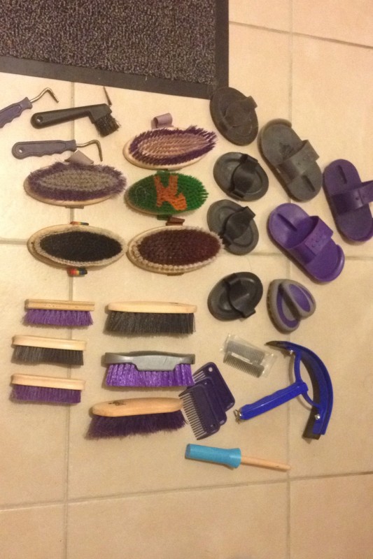 -ensemble de brosses (2 étrilles, 1brosse dure, 1brosse douce, 1cure pied, 1éponge) _ 4.5e