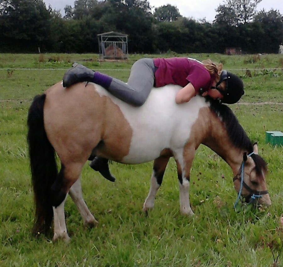 J'ai déjà eu un poney avec ma jument, que j'ai dû vendre par manque de temps ... Il mesurait environ 1m10, j'ai dû le monter pour son débourrage, mais je n'étais pas à l'aise dessus et pour son dos ce n'était vraiment pas le top ...