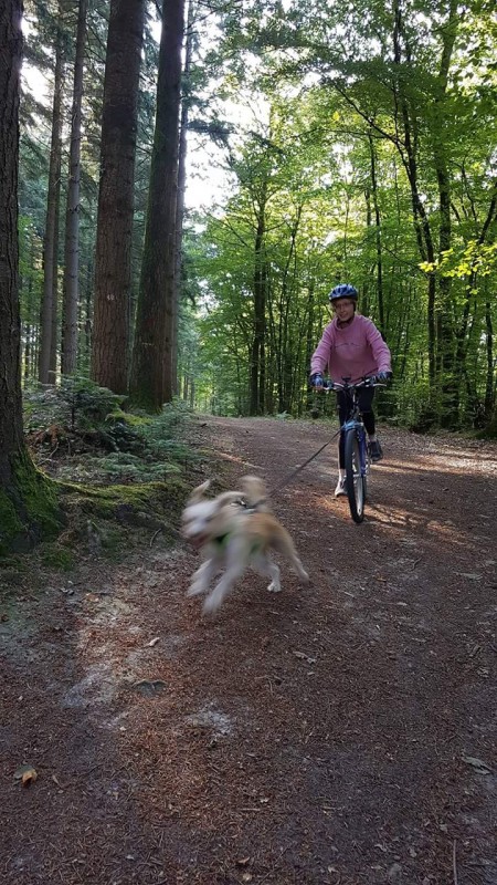 Avec mon berger belge et ma berger hollandaise on fait du trail et de la rando (la hollandaise nous suit aussi avec les chevaux mais uniquement en balade à pieds).