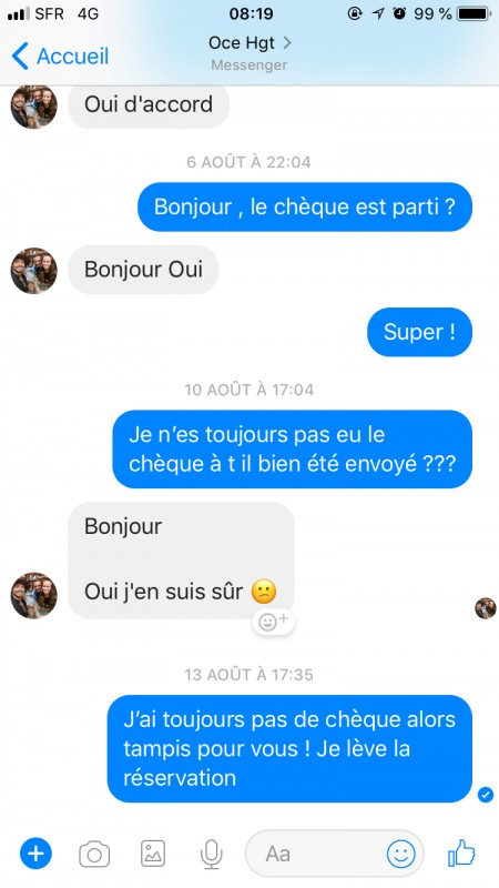 J'ai donc envoyé un message à la gérante des écuries, que je connaissais rapidement puisque j'avais essayé un cheval là bas. Quelques temps plus tard... je reçois un message de ladite nana !