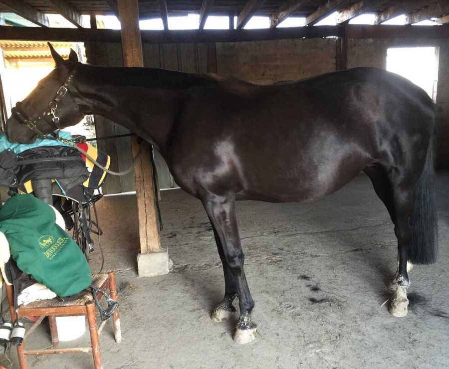 Photo à l'entrée de son paddock au haras :