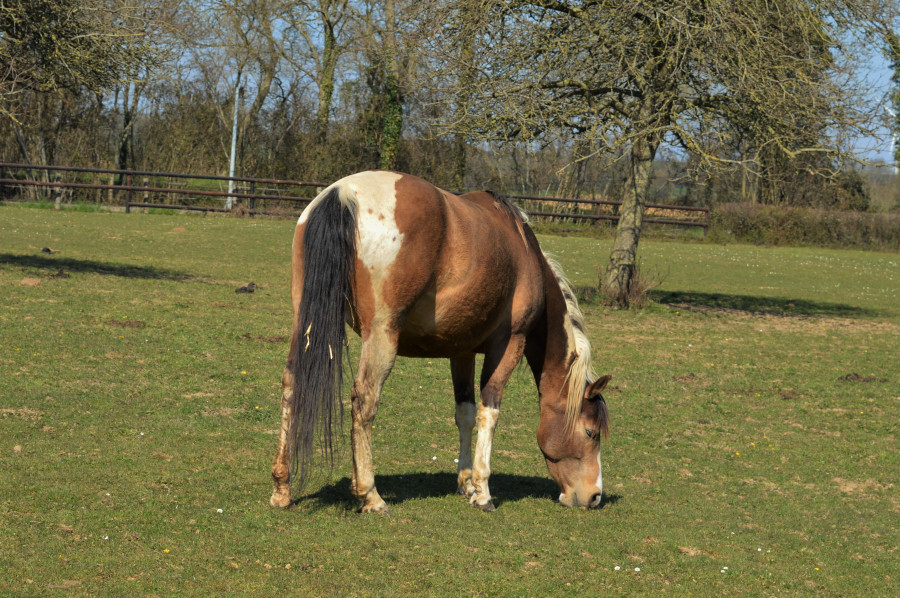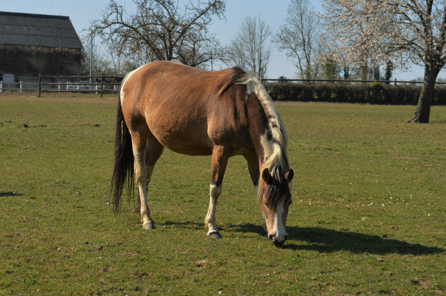 A 8 ans elle s'est fait un déchirement et un se serait arrachée un petit quelque chose dans le tendon d'après les anciens proprios. Elle est inmontable mais pas boiteuse au pré, mais là ça a gonflé et j'ai eu l'impression qu'elle n'était pas tout a fait régulière.