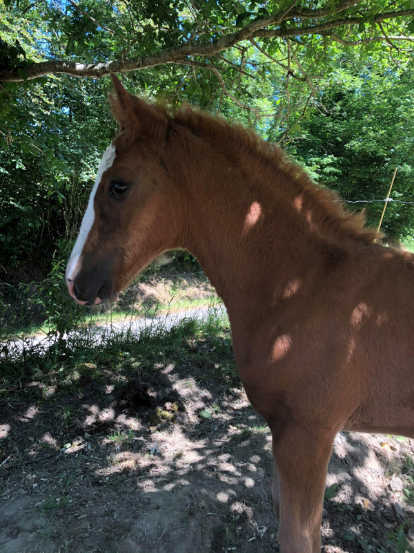 Il m'a donc regardé le poulain et ma dessuite dit que celui-ci avait l'air plutôt très jolie bien fait mais impossible à vraiment juger car il lui manque 10 à 15 kg.