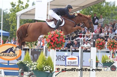 J'ai vu comme fils : Hacker et Instinct Deluxe , de grands dadets adorables. Jeunes certes mais le père a 9, est monté en filet simple sur les 140 et débute les 145. Il a l'air d'avoir du sang comme il faut.