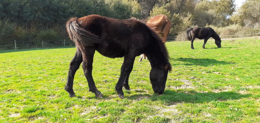 au final j'ai parlé trop vite, Amica la mere de Kosmos semble reprendre un peu. On voit moins les cotes mais la ligne du dessus est encore a remplir. Elle a plus de peche aussi. Elle a osé repondre au poney qui voulait finir sa gamelle. alors que d'habitude elle fuie. Elle est plus alerte aussi. Peut etre l'herbe verte des marais d'automne!