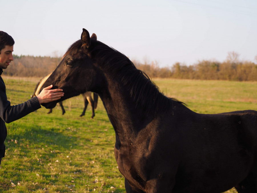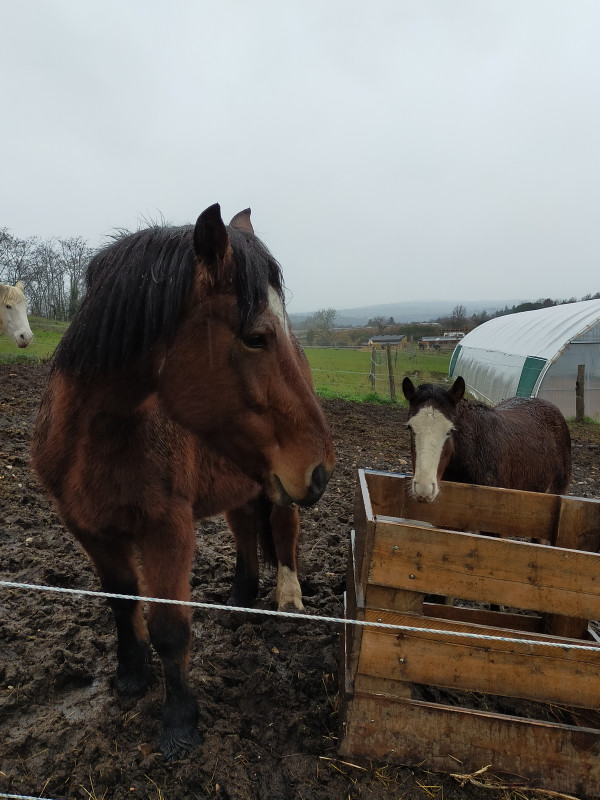 Il a vécu avec sa mère jusqu'à ses 8/9 mois et maintenant il vit en troupeau avec son papa et plein de copains de tout âge (de 9 mois a 25 ans)