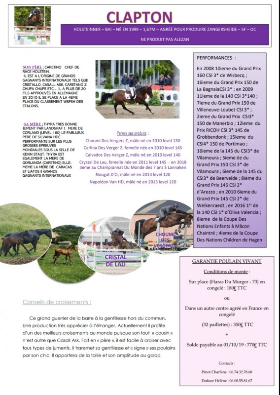 ecophemere : Guesse de Courcel la Marguerite (Diamant de Semilly) x Baloubet du Rouet terme prévu en juin