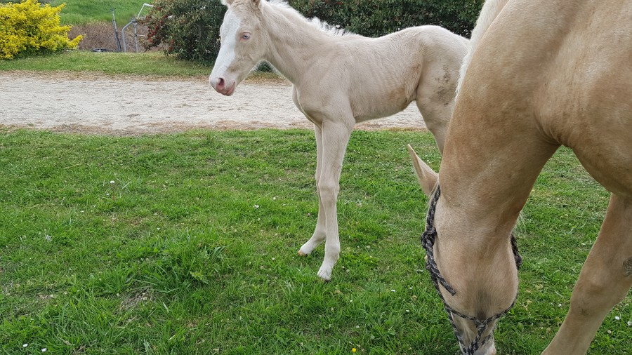 Après 36 h de questionnement et de gagattitude, je découvre que ma Jolie Môme est cremello et non palomino