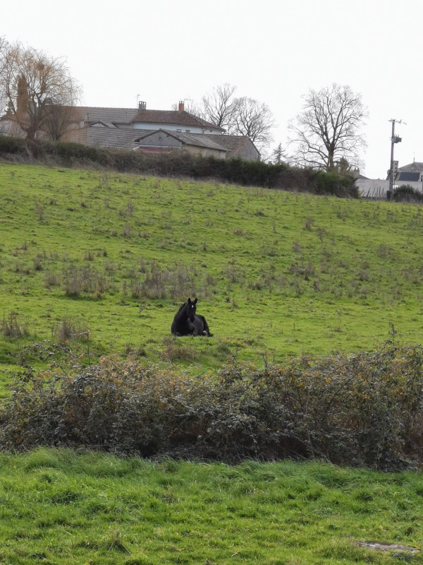 Le ventre n'est pas hyper prononcé pour l'instant, enfin pas beaucoup plus qu'en temps normal quand elle ne fait rien ... Elle a été malade il y a une dizaine de jour, le véto a fouillé et "il y a un poulain qui bouge là dedans" donc à priori, ça roule !