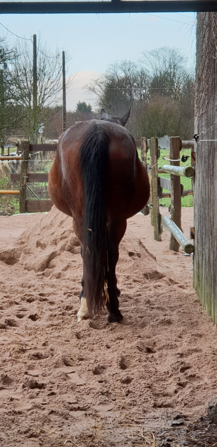 Ici aussi ça pousse, elle est tellement grosse et grasse ! Et pourtant on fait attention les compléments sont juste donné pour les apports mais pour ce poulain là, c'est un ballon ! Pas de doute qu'il soit là. Elle attaque son 8eme mois, ça va tellement vite, plus que 4 mois.