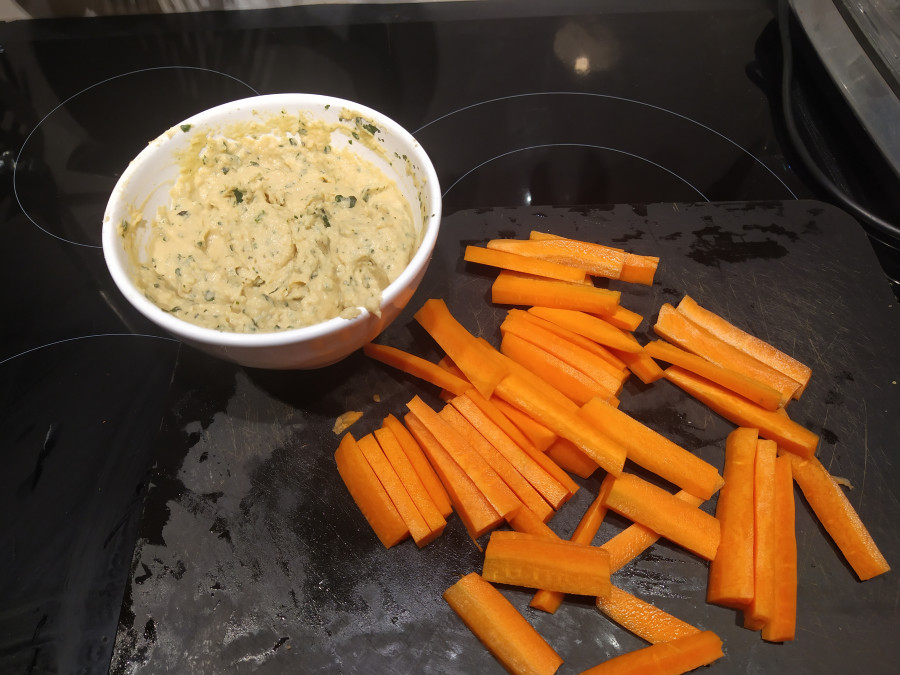 Et voilà, houmous à la coriandre et bâtonnets de carottes :p