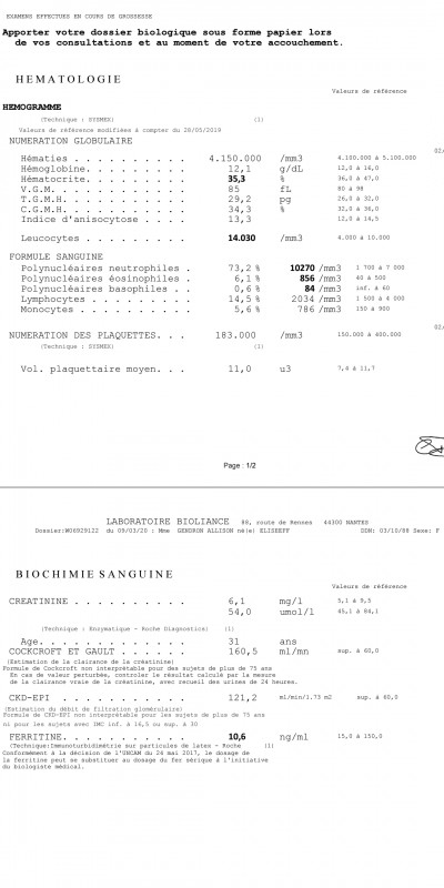 T'as les leucocytes légèrement élevés ainsi que les polynucléaires neutrophiles, t'as pas eu un syndrome infectieux dernièrement ou une infection urinaire ?