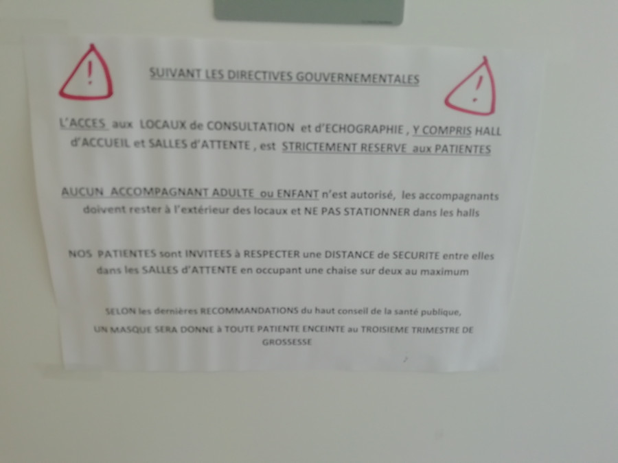 Et toutes les patientes au 3ème trimestre reçoivent un masque..( 1er et 2eme trimestre on peut pas être porteur du coronavirus apparemment ^^)