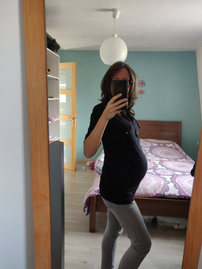 Tu n'as pas pris beaucoup de poids pour le moment dit donc ! Le bidon est bien sorti aussi, tu en as plus que pour Solène ?