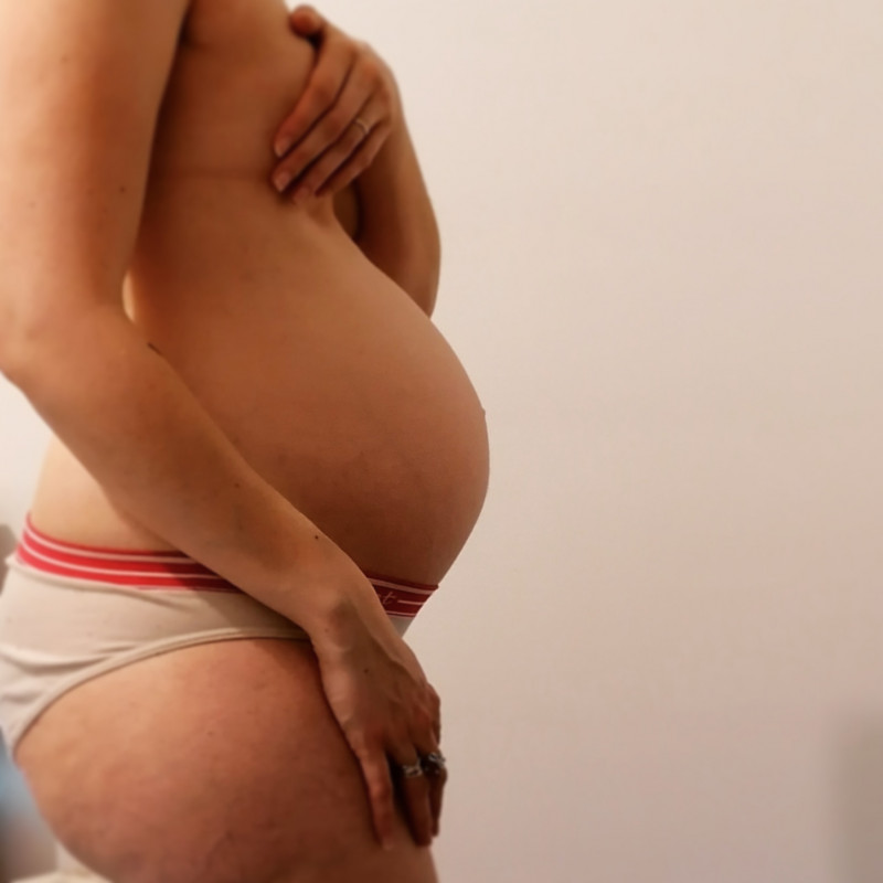 En tout cas ça te fait un beau gros bidou de fin de grossesse. On dirait que ça commence à descendre tout ça