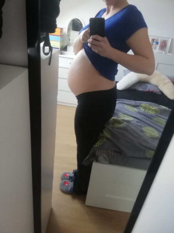 Ma belle soeur qui était enceinte de son troisième, son ventre s'est vu les deux derniers mois et encore. Quant elle allait chercher ses filles à l'école, les gens s'étonnaient de la voir enceinte et lui demandait si elle connaissait le sexe.