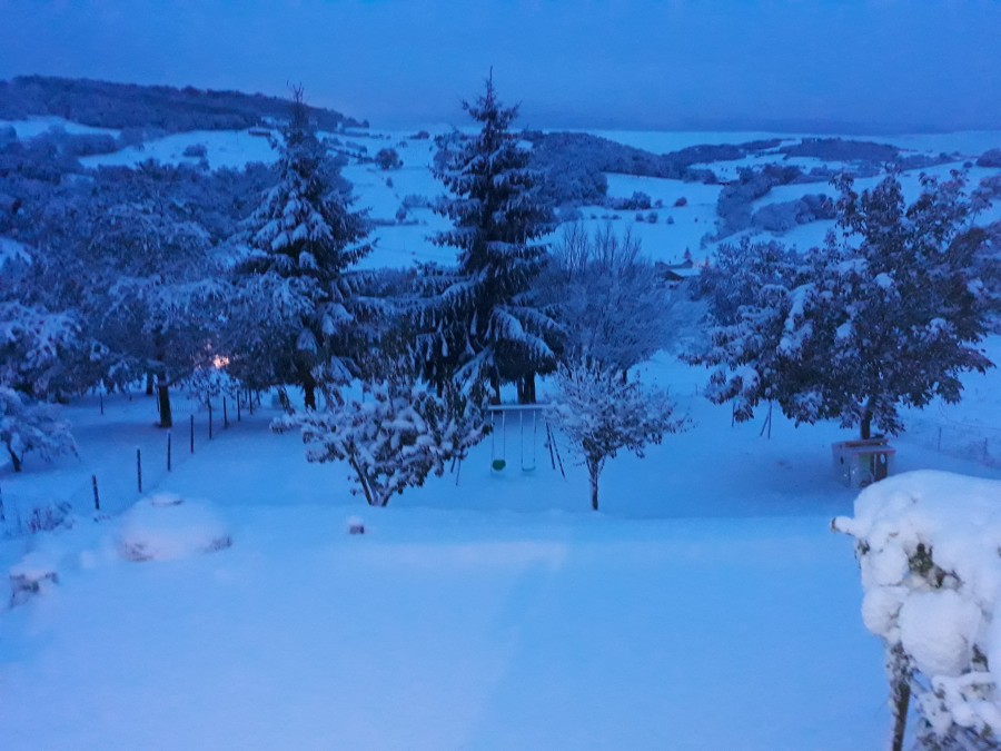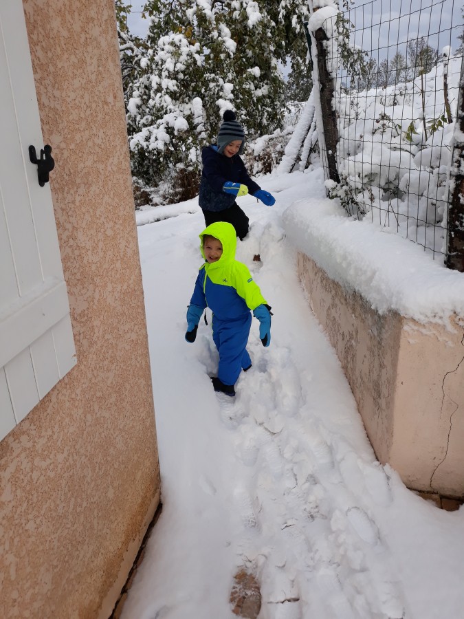 Ici une belle surprise nous attendais ce matin une trentaine de centimètres de neige sur les Monts du lyonnais mes enfants se sont régalés!