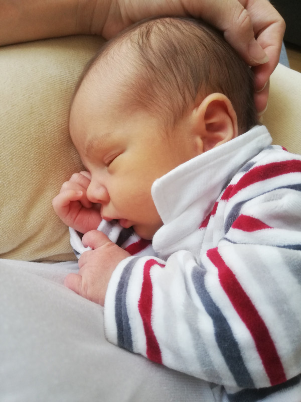 Moi tout va bien, Eliott aussi ! Il a pris 210g en une semaine et a clairement dépassé son poids de naissance (3.110 pour rappel, il est à 3.230 aujourd'hui ).