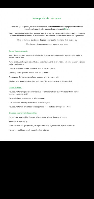 Question / remarque : "j'aimerais allaiter sereinement" qu'entends tu par là ? Est-ce que ça ne mérite pas une précision sur ce que c'est pour toi allaiter sereinement ? Par exemple j'imagine que c'est peut-etre allaiter tranquille, sans personne pour t'assister sauf si tu le demandes, et qu'on ne t'impose pas un rythme de tétée? Je n'ai pas du tout abordé ce type de demande dans mon projet parce que finalement quand j'ai vu dans le dépliant de la mater que j'ai eu à l'inscription qu'il était écrit que l'allaitement se faisait à la demande je me suis dit ok c'est bon on est raccord mais peut être pas sur d'autres détails en effet. Ca me stresse un peu d'être accompagnée pour la/les premières tétées mais en même temps j'ai jamais allaité, ce serait sans doute une bonne chose d'être accompagné car si tout va bien c'est cool mais si c'est pas tout beau tout rose je risque de me sentir désemparée.