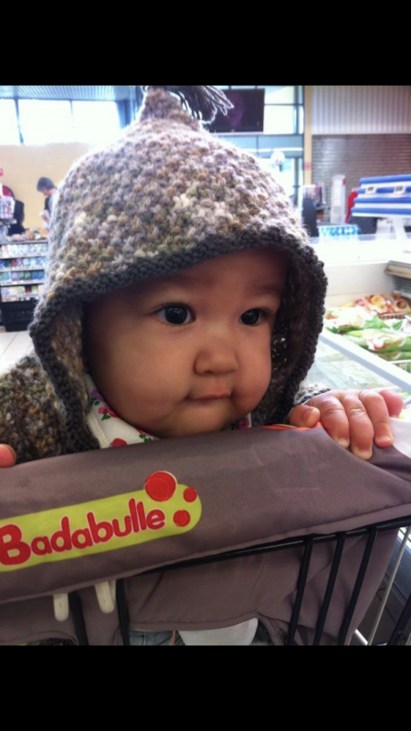 Sur la photo dans le caddie, le gilet était tricoté par ma mère. J'y tiens beaucoup.