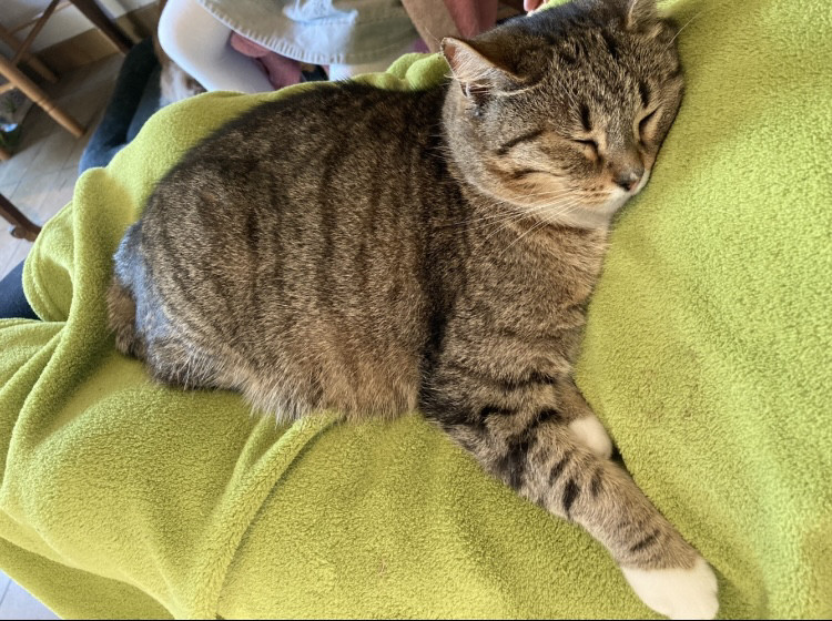Ici dès que je m'assois quelque part le chat vient sur moi haha il me colle tellement qu'hier le pauvre s'est retrouvé avec la patte coincée dans la porte des toilettes.