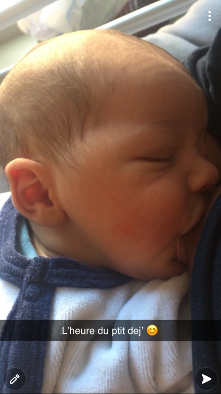 Effectivement c'est déjà plus détendu que le jour où il est né mais il a pas encore les deux mêmes pieds!