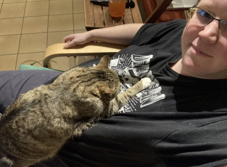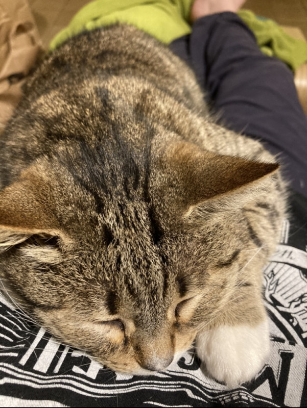 Mon gros chat, fidèle au poste pour s'assurer que bebe va bien! Il ronfle et ronronne en même temps. Il est mon chauffe ventre depuis le début de cette grossesse!