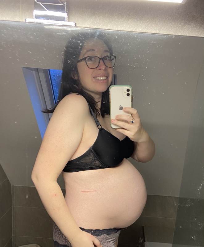 Coucou ! J'ai voulu faire une photo mais je suis dsl j'avais pas vu l'état du miroir de la salle de bain des enfants (pourtant y'a que Léane pour le moment aha) mais bref j'assume et je vous la montre quand même lol bref je suis à 37 sa et demi et voilà je commence à sentir quelques contractions de temps en temps mais rien de fou, je pense que mon corps se prépare très tranquillement mais ça fait bizarre. Je veux tellement pas accoucher avant mi-fin janvier que rien n'est prêt pour le bébé, j'espère qu'il m'entends aha mais bon je me suis quand même motivée à regarder / faire ce qu'il manque à partir de la semaine prochaine :) sait on jamais lol