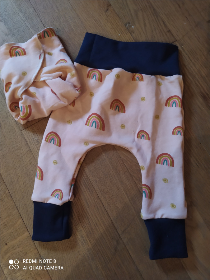 Du coup je partage avec vous mes premières cousettes pour bébé : petit sarouel intérieur polaire tout doux + couche préplate (j'assortie surtout pour rentabiliser mes chutes de tissus, ma 2e a aussi le même sarouel en 2-3 ans xD).
