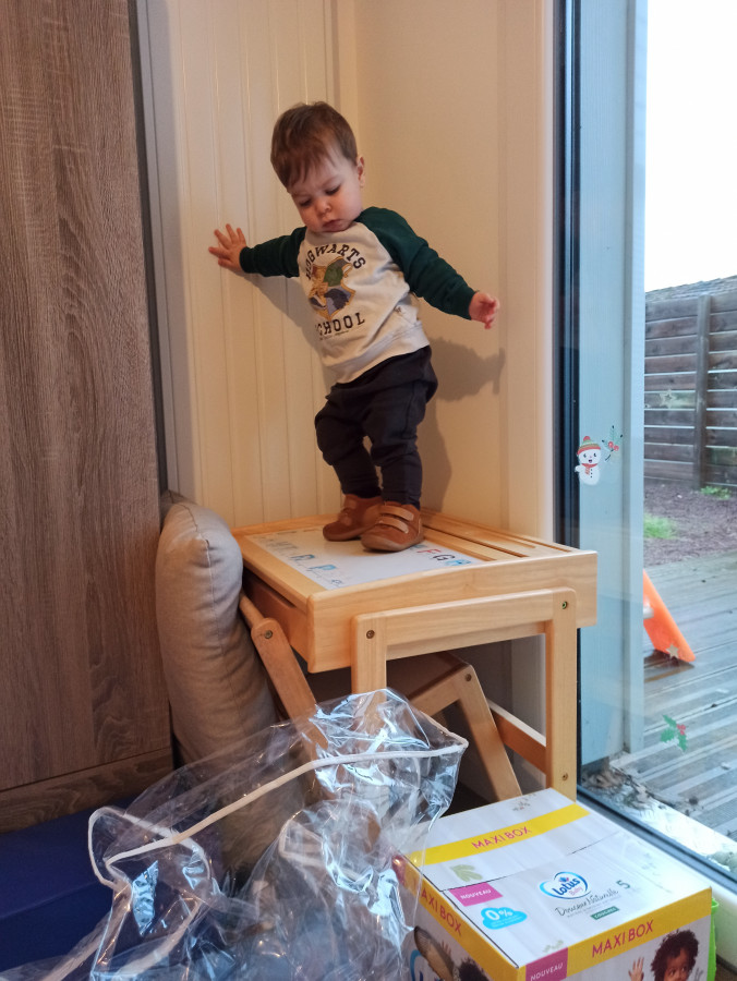Maintenant il a 3ans et demi, il prend une chaise pour monter dessus quand il veut me regarder cuisiner, ou attraper quelque chose en hauteur. Mais je suis sereine je sais qu'il gère ça très bien.