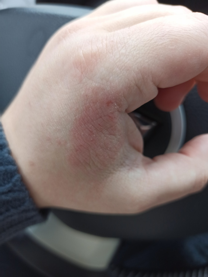 Petite photo juste de la main, j'en ai sur le front, les lèvres, les bras, les jambes, les pieds, les omoplates et le ventre commence aussi...