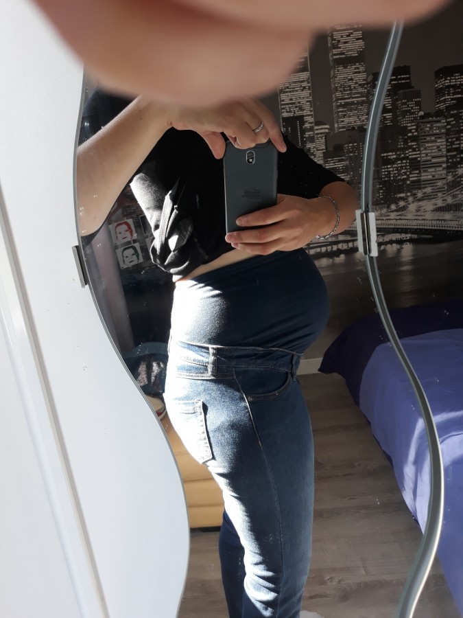 Timéo a 6 semaines c'est pas encore ça le bidon même si je rentre dans certains pantalon d'avant grossesse (en même temps j'ai pris que 7kg durant la grossesse donc je contraire aurait été bizarre). Disons que je ruse un peu avec les hauts pour cacher la brioche