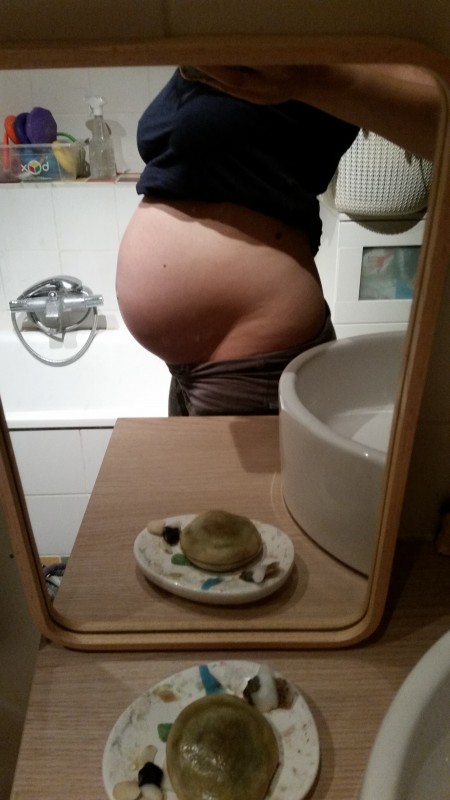 Là dessus, vers 11h30 l'infirmière arrive, je ne l'avais encore jamais rencontrée, elle était censé venir contrôler ma tension qui était un peu haute en cette fin de grossesse. Mon amie va lui ouvrir, et lui annonce qu'elle va assisté un accouchement ! De ma baignoire, j'entends la panique dans leur voix, ni l'une ni l'autre n'était préparé à ça; leur dialogue ressemble à une pièce de théâtre ^^