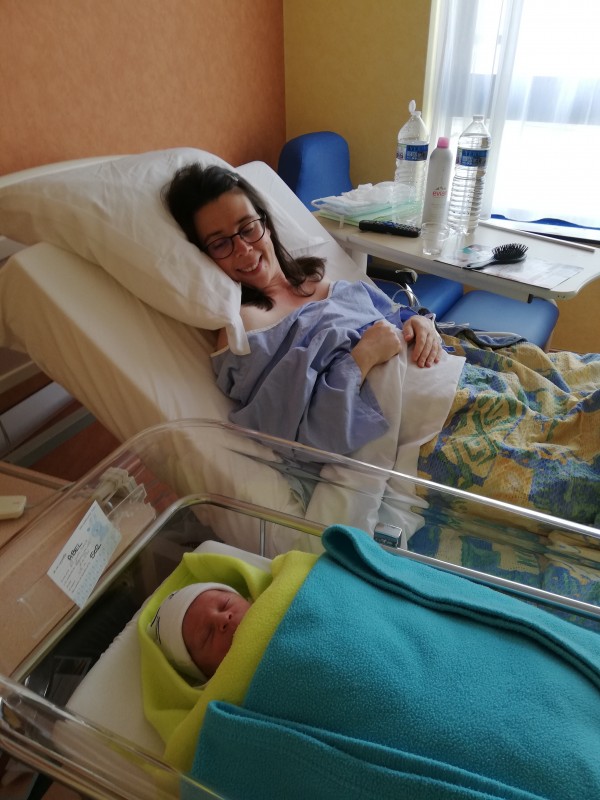 On m'installe en chambre, pour la 1ere nuit ça sera chambre double car ils sont au complet Ya eu plein de naissances avec la pleine lune. La dame a côté est très sympa elle revient de césarienne.