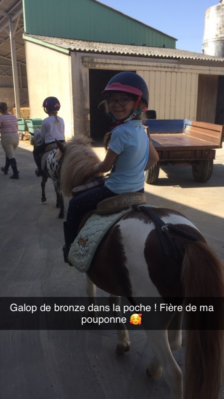 Manon a eu son galop de bronze :) Bon ça été ardue la théorie de lui apprendre...Pas forcément adapté pour des petits faut voir les termes utilisés, mais bon elle a géré ma poule Et cet aprem bain libre pour tout le monde pour rafraichir. Ça va il fait pas trop chaud dans la maison mais Arthur transpire d’un rien... Et hier première « piscine »