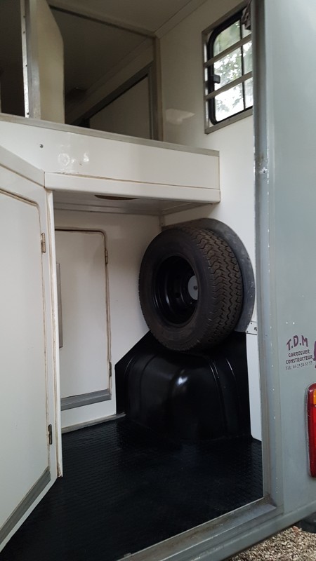 Partie "capucine" : il y a un espace au-dessus de la cabine conducteur qui est accessible depuis la cabine cheval et semble suffisamment grand pour y aménager un coin couchette. Pour l'instant il y a juste un plancher simple, le but serait d'isoler un peu tout ca et d.y installer de quoi dormir (dimensions = 1m10 de large sur 1m90 de long).