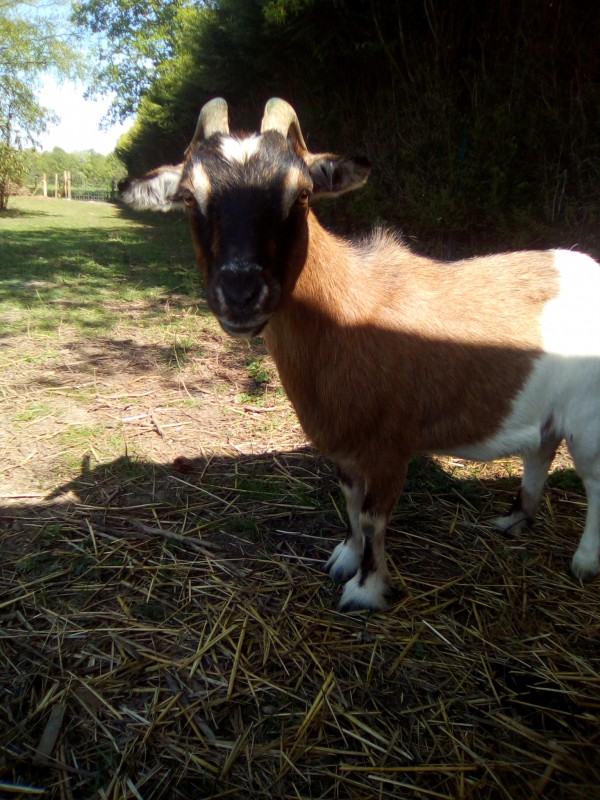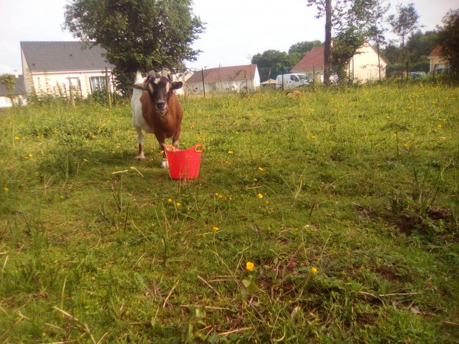 Sauf que le problème c'est que malheureusement c'est une chèvre qui a été maltraité et impossible de passait nos mains aux dessus de sa tête (les caresses c'est le poitrail et le bout du nez)mais par contre elle est aussi collante que de la colle ?