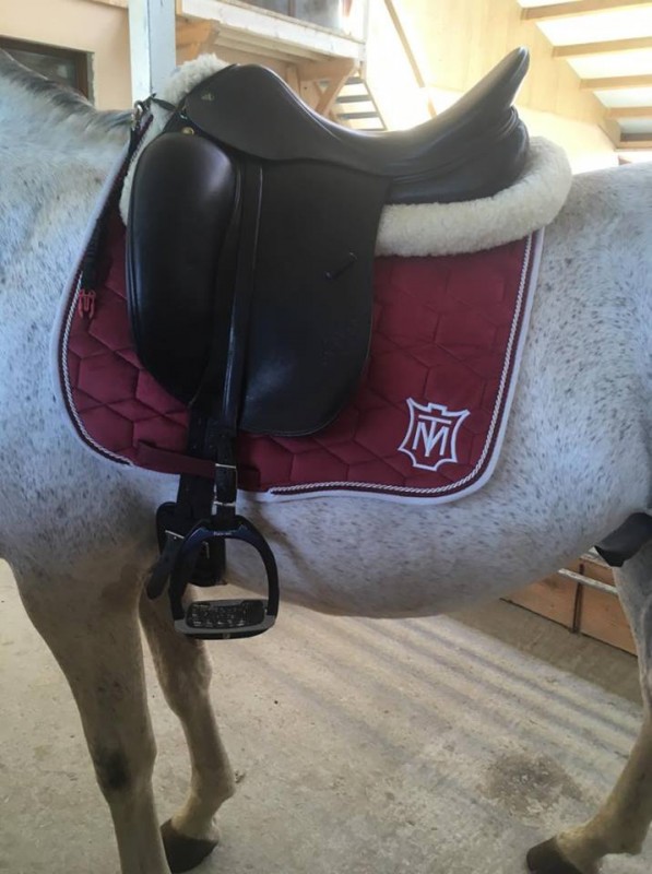 Sa toute première était une wintec close contact. Elle fittait pas mal, mais trop longue. Ça ressortait aux comptes rendus ostéo, toujours les mêmes soucis en selle.