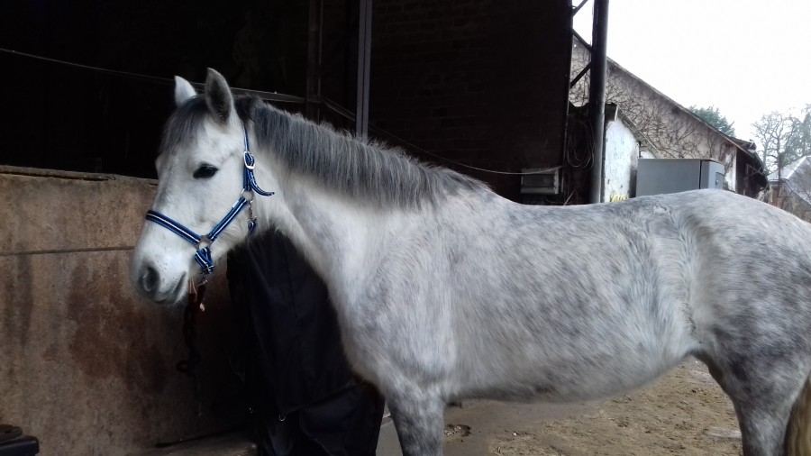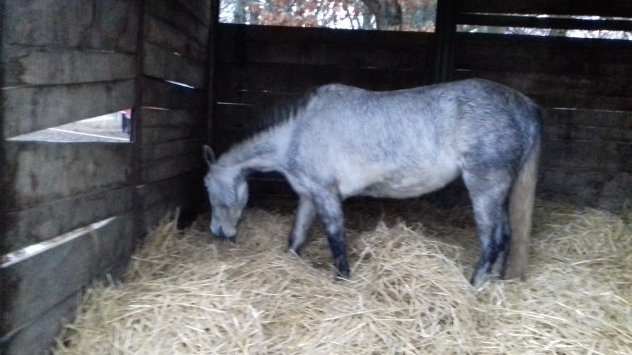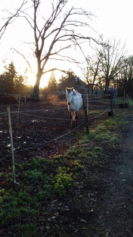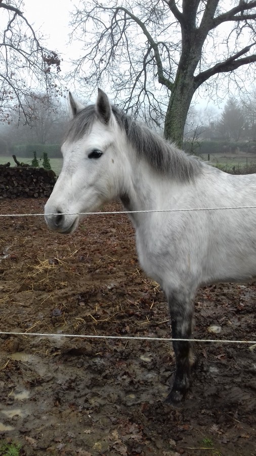 Son poil est bien sec, elle a dû passé la nuit au chaud dans l'abri, d'ailleurs elle a un peu de paille sur le dos !