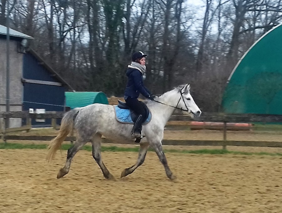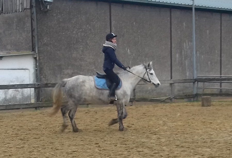 En essayant de bien calquer l'énergie de mon corps + mon regard sur ma demande, j'envoie Beauty sur un cercle, elle répond très bien directement. De la même manière, elle répond merveilleusement bien aux demandes d'arrêts/de transitions. Les changements de mains, qu'elle n'avait jamais fait, elle a compris direct, du premier coup, rien qu'à ma position vis à vis d'elle.