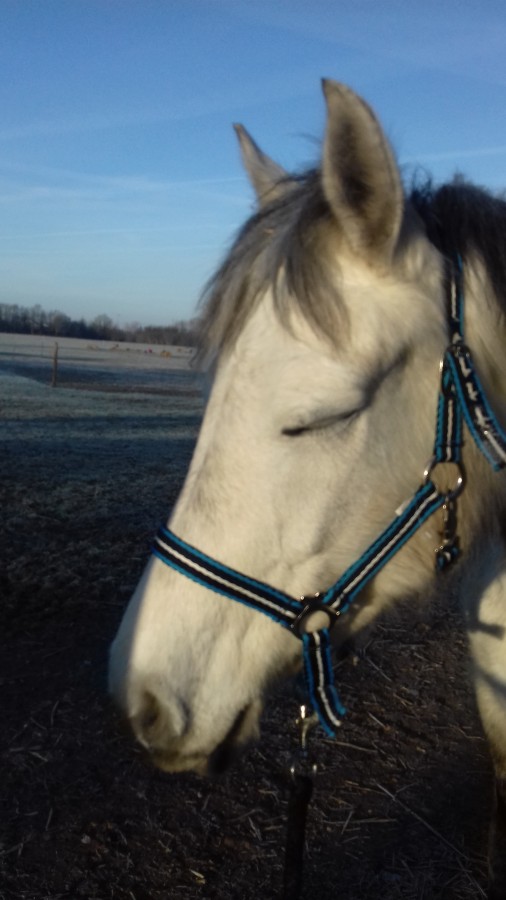 Beauty teste encore au montoir. J'ai rusée et emmené des rondelles de carottes. Tu es immobile --> une rondelle ; tu bouges --> je te remets à ta place.