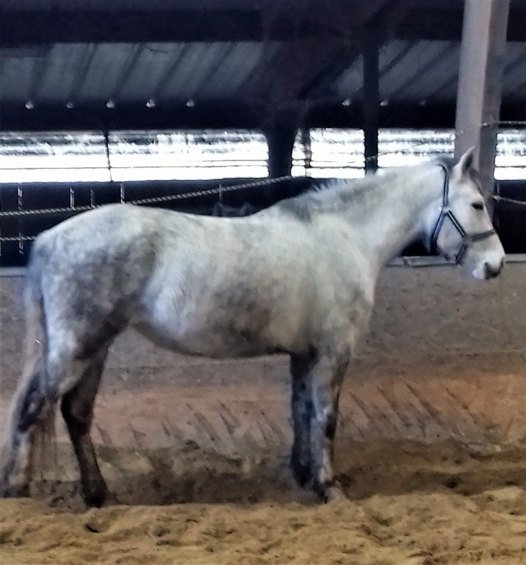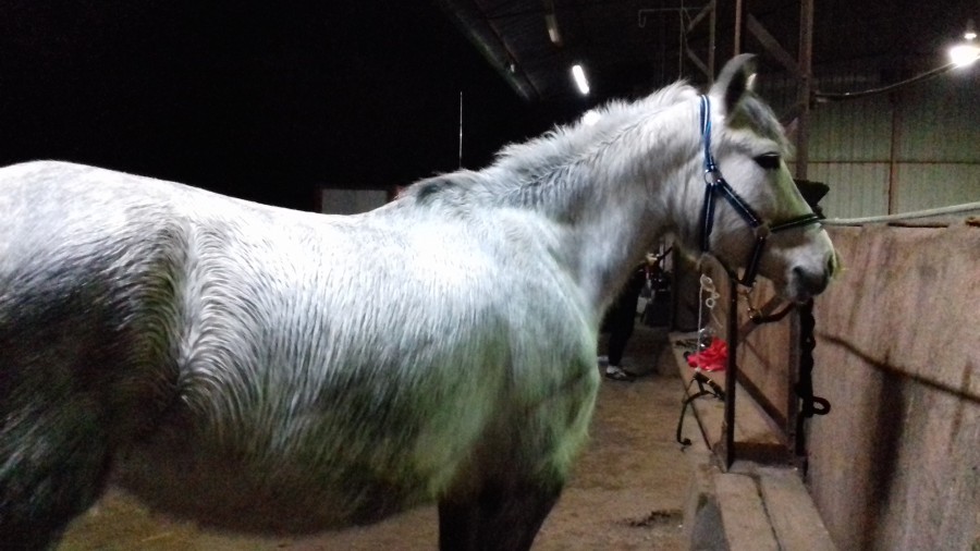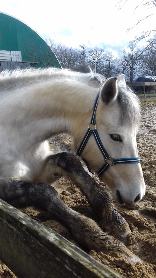 Je commence donc par ramener Azur, en laissant Beauty seule dans la carrière. Je me méfie ++ en main mais la tacheté reste sympa et ne me colle pas ? c'est agréable ! Côté poil gris, c'est l'apocalypse. Beauty hennît à se rompre les cordes vocales de voir copine de pré + référente humaine la laisser seule.