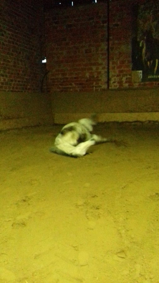 Donc à vrai dire je ne suis pas du genre à laisser du sale haha. Par contre je me souviens très bien d'une fois où Killa s'était roulé au paddock pendant une averse. Il s'était mis une fine couche de boue humide que je n'avais pas réussi à nettoyer du coup)