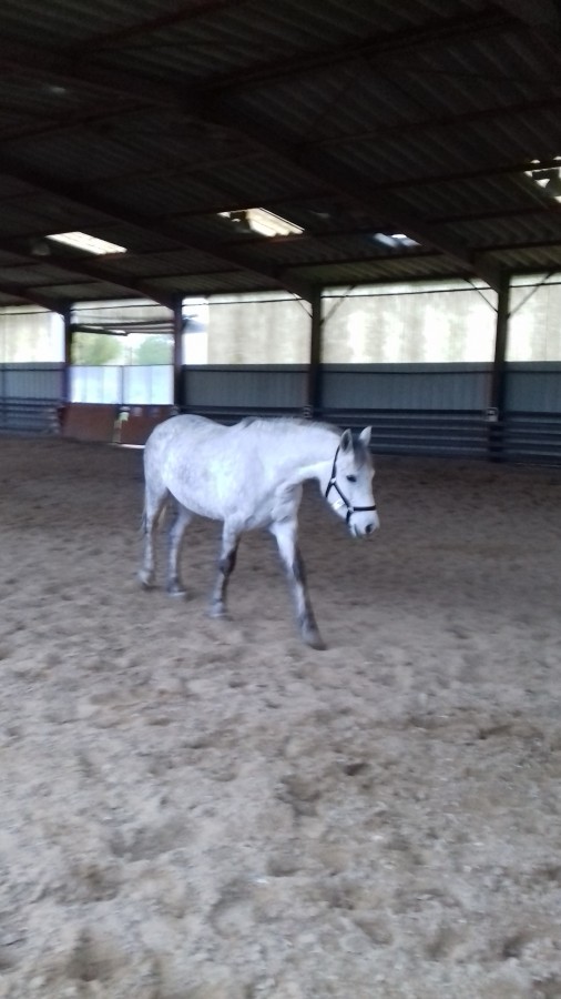 Bref, un nouveau cheval, même sympa à la base, il y a toujours des imprévus et une période d'adaptation délicate. Pour ma part, je me suis fait encadrer par un moniteur, pour avoir son point de vue et des conseils sur les problèmes rencontrés à pied. La première séance a commencé dans le pré, et s'est poursuivie dans la carrière qui fait peur. La louloutte a eu quelques réactions de peur, que le moniteur a dedramatisées, et finalement on a quand même bien progressé.