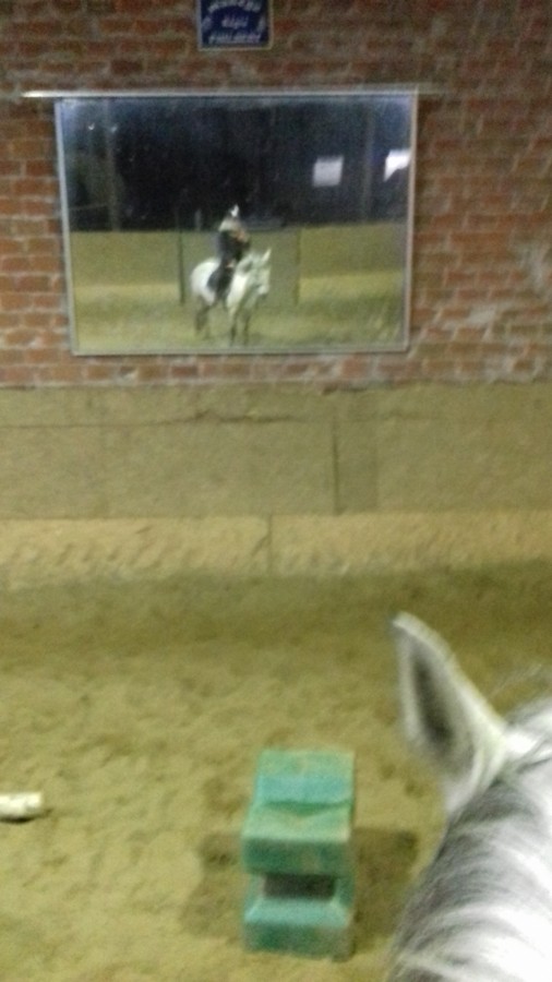 Pour le cours G7, je pense que la coach adapterait l'exercice aux capacités de Beauty (souffle, concentration ...) mais bien sûr elle n'est pas prête actuellement et le but n'est pas de la mettre à l'obstacle ou sur deux pistes mais de lui faire côtoyer d'autres chevaux montés.