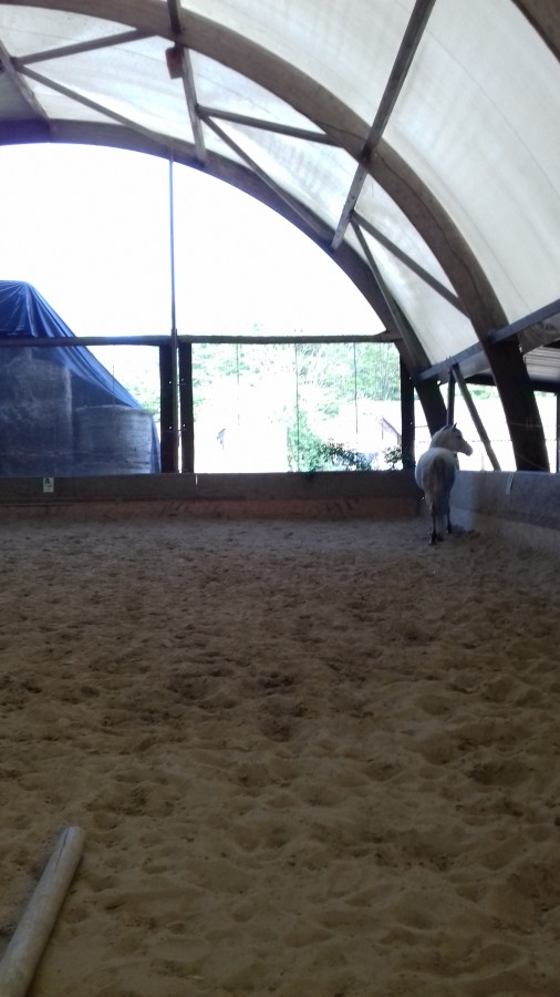 Il y a quelques gouttes et des cours/stages un peu partout, nous allons donc nous installer dans le petit manège.
