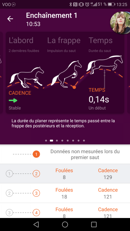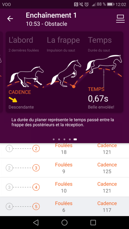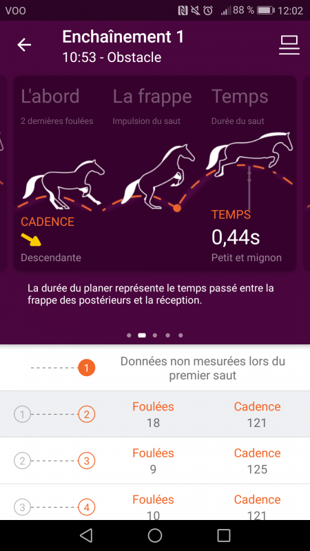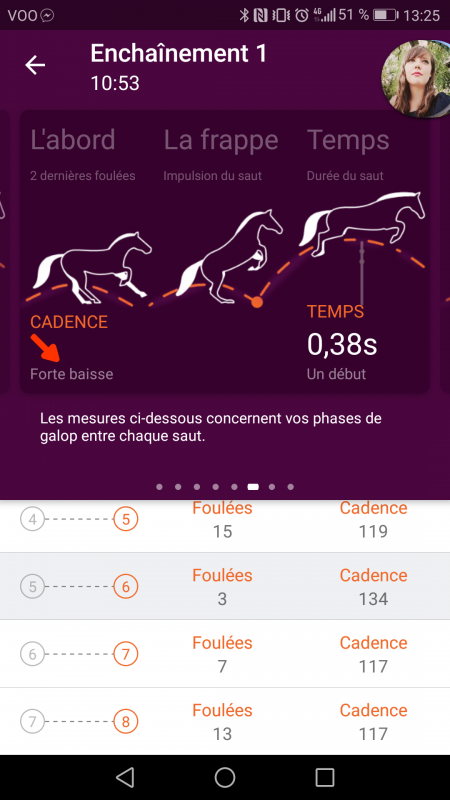 En gros, lorsque je l'amène vers un obstacle, elle a tendance à augmenter énormément sa cadence devant puis sur les 2 dernières foulées énormément perdre en cadence.