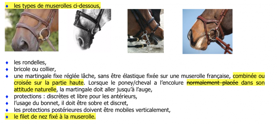 Muserolle double, en corde, extraordinairement serrée (au point de modifier la forme du chanfrein, on dirait que l'animal a un bec)